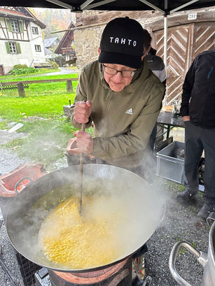 Unsere Weiterfahrt führte uns nicht weit – zur Aumüli in Stallikon. In der historischen Mühle erwartete uns bereits das Team von „Chillfoods Füüri“ aus Bern, um uns beim Event «Feuerkochen» zu begleiten.